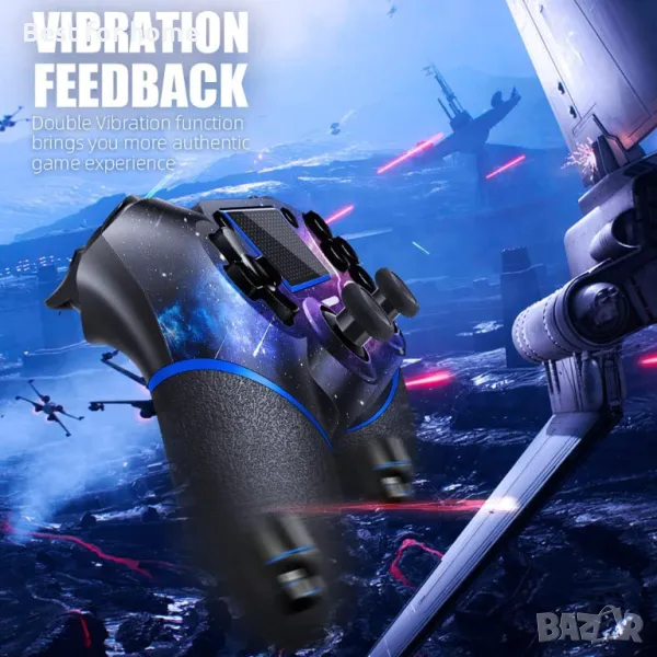 🎮【Двойна вибрация】 Контролерът има вградени двигатели с двойна вибрация, които могат да осигурят различни интензитети на вибрационна обратна връзка според различните сблъсъци в играта. Бутоните за задействане и аналоговият джойстик са силно чувствителни, без почти никакво отклонение и забавяне при всички операции.
