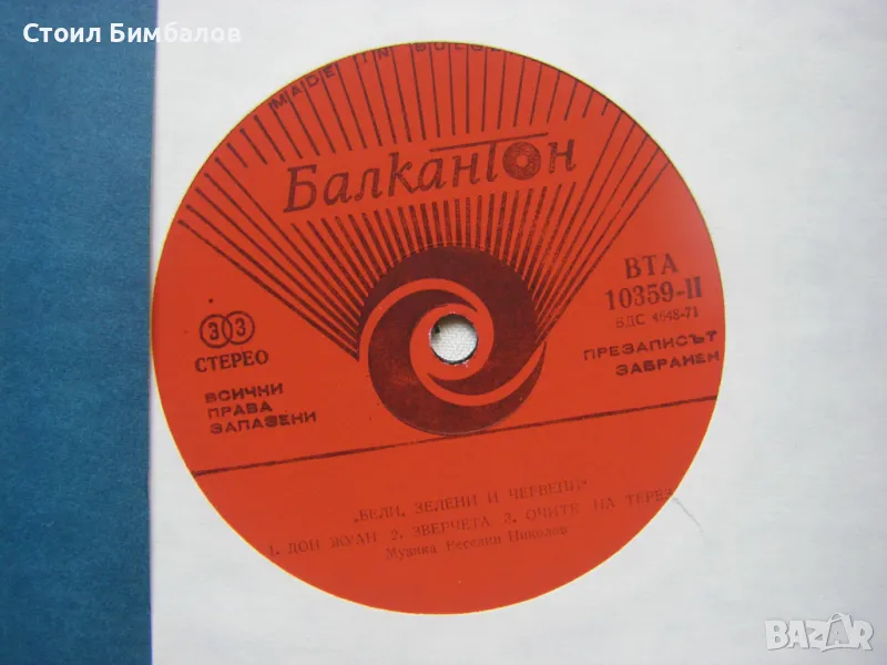 Грамофонна плоча - ВТА 10359 - Бели, зелени и червени. Дон Жуан