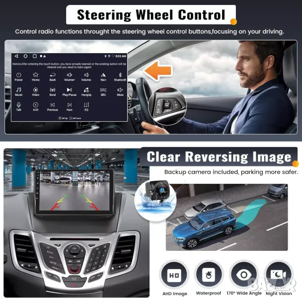 2GB+64GB цена 329.90лв, 4-ядрен процесор, Android Auto, CarPlay, Wi-Fi, RDS, AHD камера