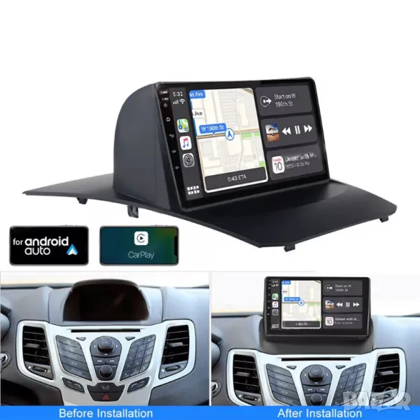 Мултимедия, Двоен дин, Навигация, за Ford Fiesta 2009-2014, Форд Фиеста, плеър, екран, Android, 2DIN