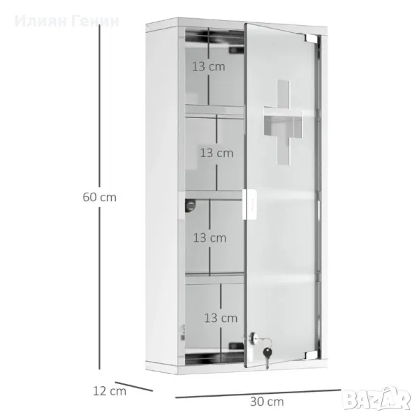 HOMCOM Медицински шкаф с ключалка от неръждаема стомана за първа помощ, 30 x 12 x 60 см, заключващ се - 100.00лв.