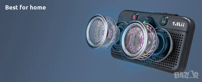 Двойни 3W високоговорители и двойни микрофони: С двоен 3W високоговорител и вградени двойни микрофони, 1Mii MK02 Bluetooth високоговорител за кола осигурява по-силен и ясен звук за вас и човека от другата линия дори при околния фонов шум.