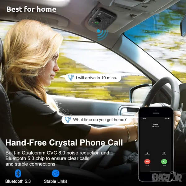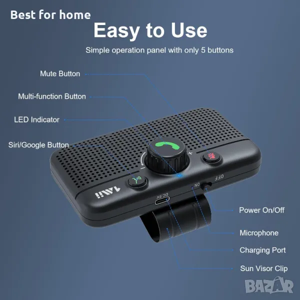 【По-безопасно шофиране】1Mii MK02 Bluetooth високоговорител за кола поддържа Siri и други марки Voice Assistant в режим на готовност на устройства с Andriod или iOS, така че можете да извършвате разговори със свободни ръце, да изпращате текстови съобщения, да слушате музика или да получавате упътвания за шофиране от GPS приложения.