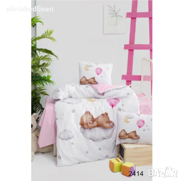 Спален комплект за бебешка кошара с пухкави зайчета, мечета от фин памук ранфорс. Мекотата на ранфорса го прави изключително подходящ за бебешко спално бельо, защото не дразни нежната кожа на бебчето и е антиалергичен, не съдържа полиестер и не се наелектризира. Щампите са красиви, нежни, пъстри, за да привличат вниманието на малкото човече. Пухкавите животинки и пъстрите цветчета са първите приятели на бебчо в този нов шарен свят.