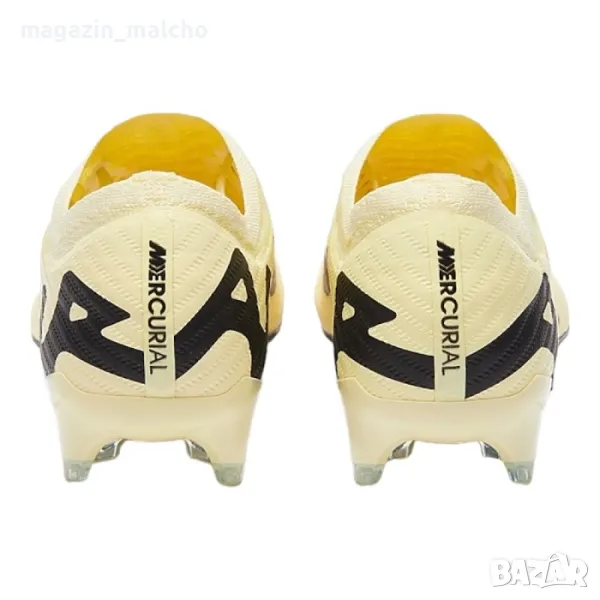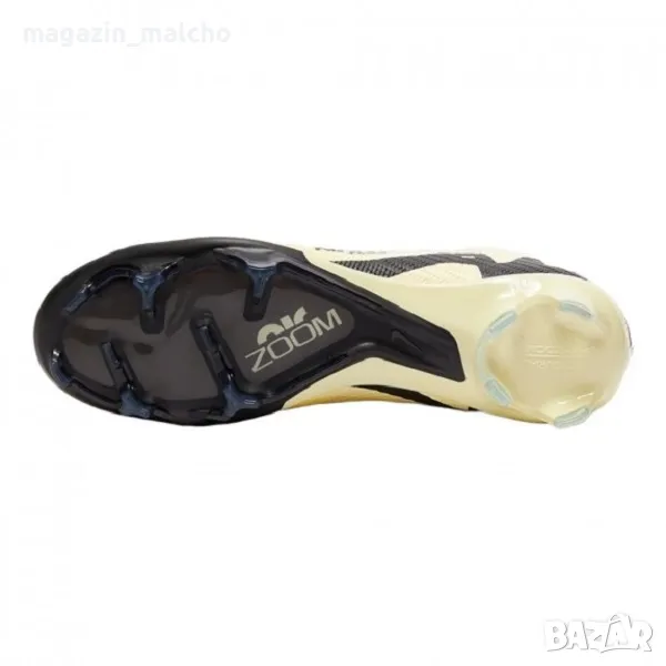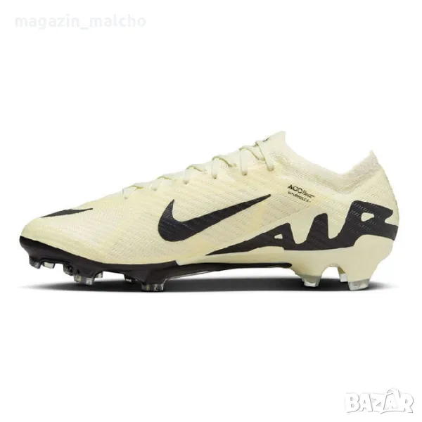Насладете се на футбола с Професионални калеври на Nike. Използвайте модел ZOOM VAPOR 15 ELITE FG на стадиона или терени с естествена трева. Тези футболни обувки предлагат изключително сцепление на естествени терени, благодарение на формованите бутони, разположени стратегически, за да предложат бързо движение по терените. Престягането им към крака става посредством системата чорап, която пристяга обувката към глезена без да се използват връзки, а това спомага за по-качественото водене и удряне на топката. Омекотената стелка предлага удобство, а закрепването с връзки стабилност и комфорт.