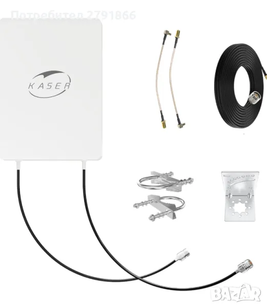 - Съдържание: 1 панелна антена с N конектор 2 коаксиални кабела с ниски загуби по 10 метра с N-SMA конектори, 2 комплекта за монтаж на мачта.