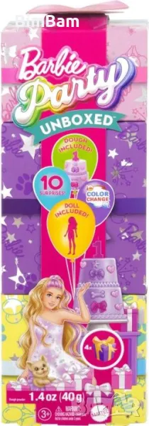 С Barbie Party Unboxed Pet Birthday Series всяко разопаковане се превръща в парти! 🎂 Комплектът включва 10 изненади, сред които кукла Барби, мини домашен любимец и аксесоари за забавни моменти.
