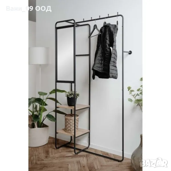 То е с разчупена визия с огледало и е елегантно и функционално решение за всяко антре. Изработено от прахово боядисан метал с дебелина около 20 мм, предлага отлична издръжливост и съвременен вид.