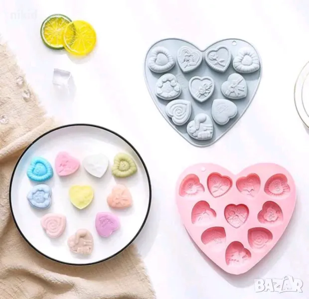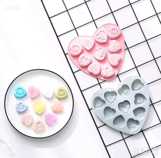 10 различни сърца сърце силиконов молд форма фондан шоколад бонбон бонбони гипс лед → Обява 49092704