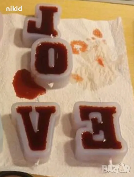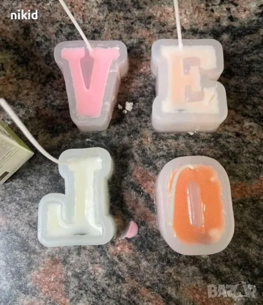 LOVE L O V E букви буква от рози надпис текст силиконов молд форма фондан гипс шоколад смола свещ → Обява 49092762