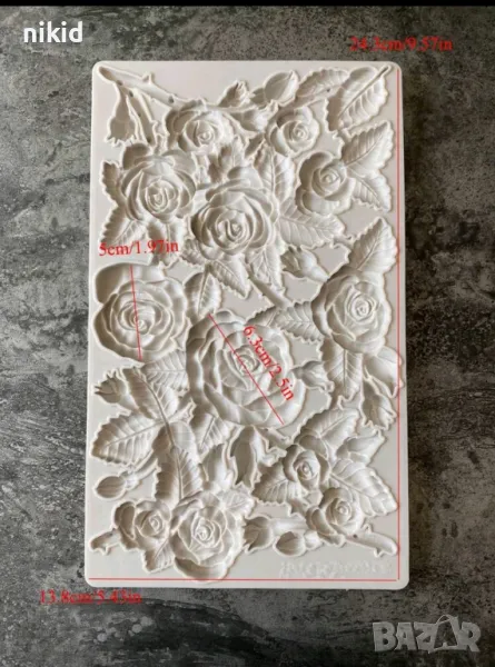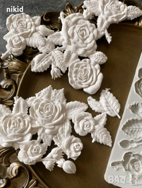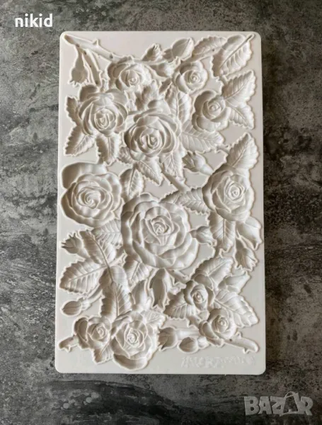 Голямо пано с много рози с листа роза силиконов молд форма фондан шоколад гипс декор → Обява 49092766