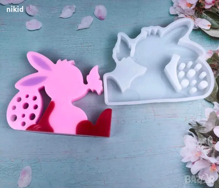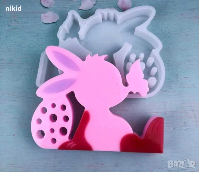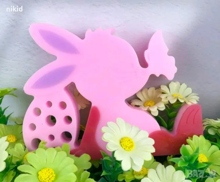 Заек зайче с кацнала пеперуда и яйце Великденски силиконов молд форма смола шоколад гипс декор пано → Обява 49092797