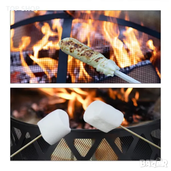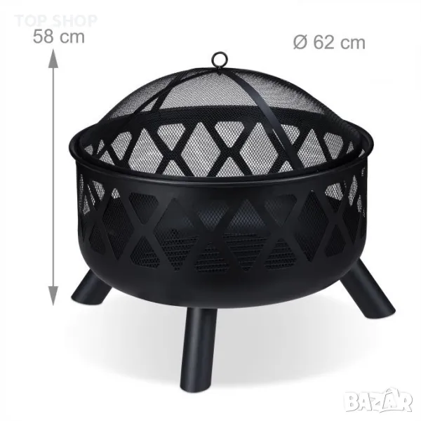 Обичате ли да седите до огъня, но нямате собствена камина? Тогава купата за огън за градината или терасата е точното нещо, за да прекарате уютна вечер с приятели или семейство. Романтичното гледане на звезди също е особено добро около затопляща камина. Предпазителят за искри с красива диамантена шарка гарантира, че няма да получите искри. Можете да запалите огъня с включения покер. Насладете се на огнената атмосфера!