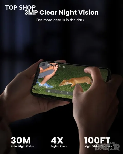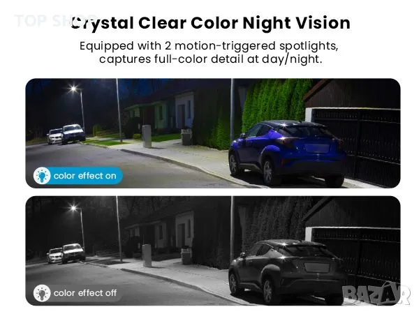 Камерите ieGeek за домашна сигурност са оборудвани с 1/3 CMOS цветен сензор, осигуряващ кристално ясни изображения и видеоклипове независимо от метеорологичните условия. 4 IR светлини автоматично усещат околната светлина и превключват към режим на цветно нощно виждане, разстоянието на монитора е до 100 фута/30 м. В допълнение, ние предлагаме 2 години гаранция, за да запазим вашата безопасност и доверие.