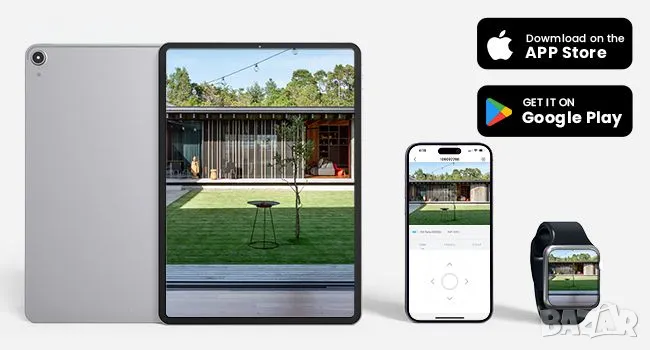 Нашата поддръжка на слънчева wifi камера се свързва със смартфони с iOS / Android, смарт часовници и таблети.