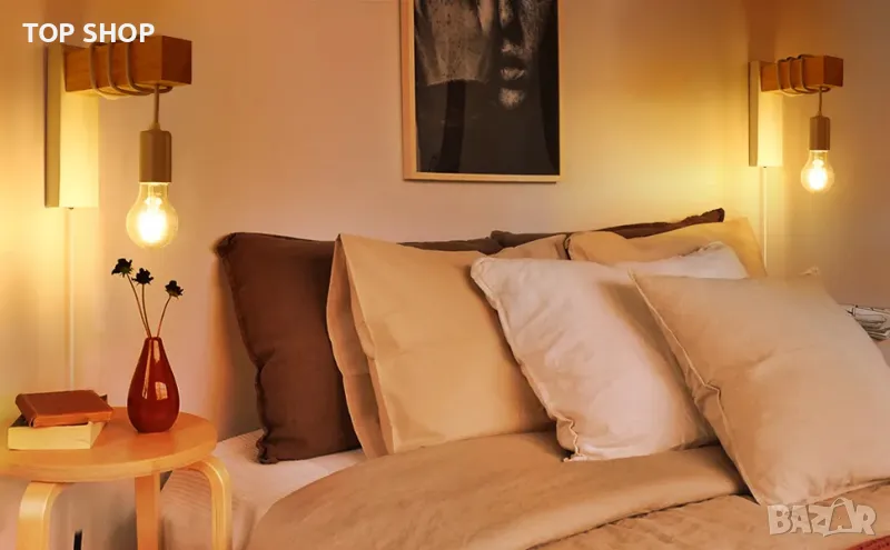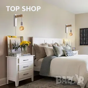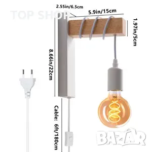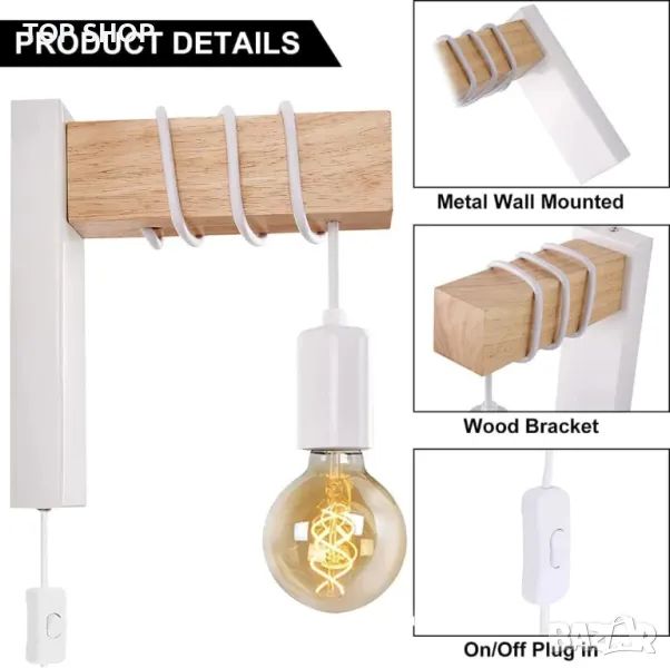 Ключови думи: индустриална ретро лампа, SENFAY, дървена скоба, бяла тел, нощна лампа, E27, винтидж елегантен дизайн, луксозен блясък, осветителен инструмент, декорация за дома.