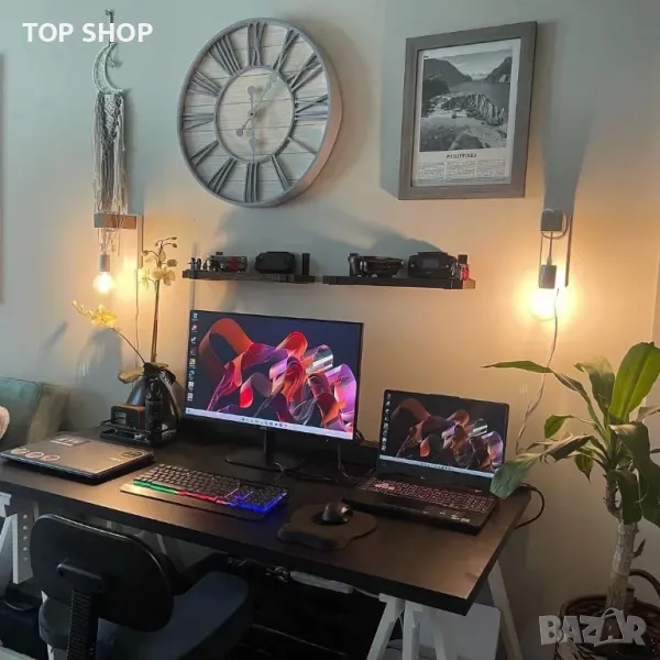 - Размер: 1,5 м, размери: бяла метална основа: 8,66 * 2,55 * 1", дървена опора: 5,9", дължина на кабела/проводника: 6 фута.