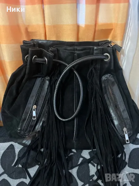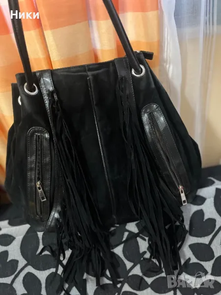 Чантата е ползвана много малко , почти няма следи от употреба. Велур със ресни и две джобчета.
