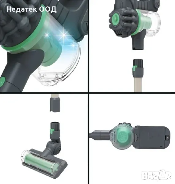 Детска ръчна прахосмукачка с лесен монтаж и демонтаж, кошче за прах, много комбинации за игра, светлини и звуци при работа. Комбинирайте домакинската работа с ученето в игра на преструвки. Работи с 5 AA батерии (не са включени).