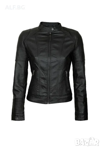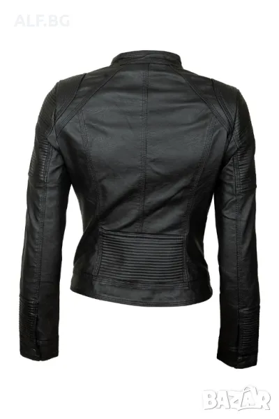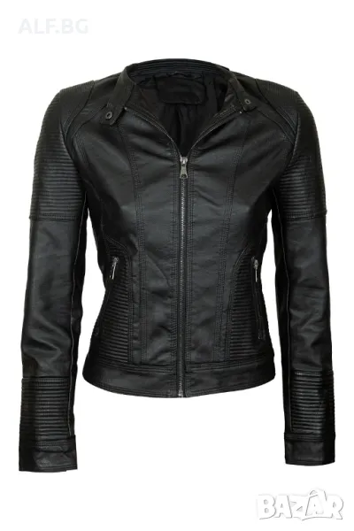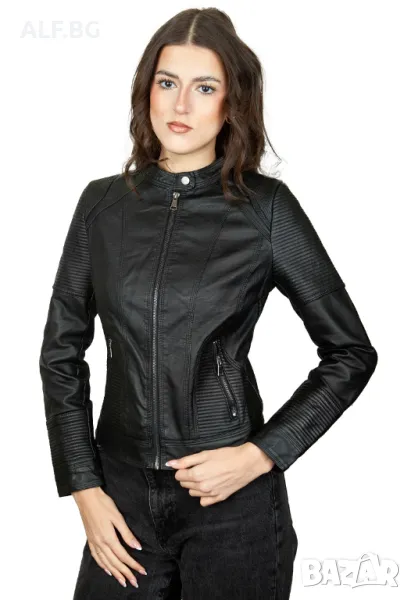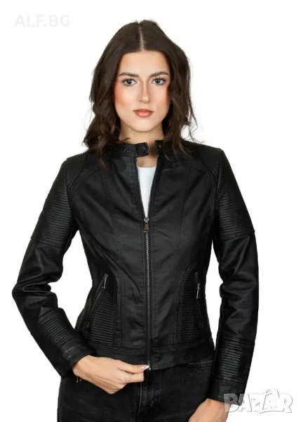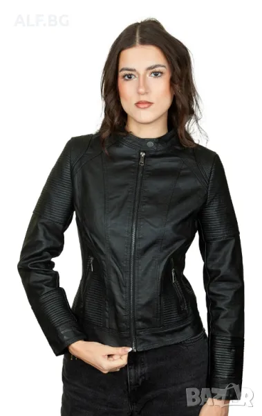 Елегантно дамско кожено яке от висококачествена еко кожа. Кожата на якето е много мека и приятна на допир. Вътрешната част на якето е изработена от шушлякова подплата. Подходящо за пролетно-есенния сезон.