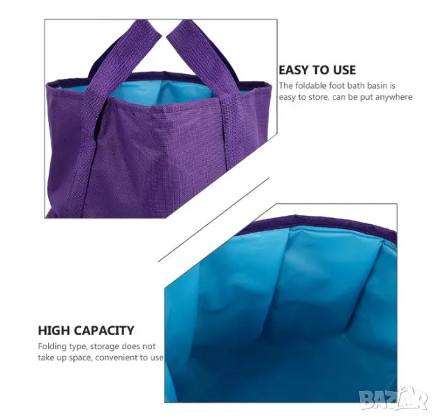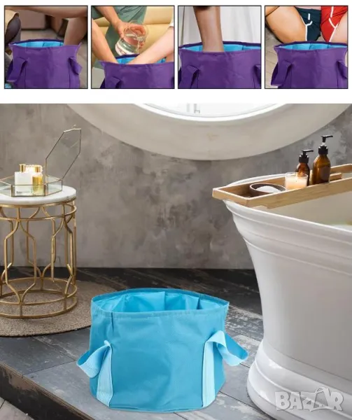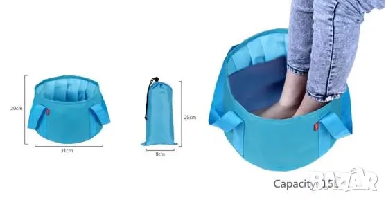 Ако желаете сгъваема ваничка за крака с вместимост 15 литра вода и разгънати размери 31 см. х 20 см., сгънати размери 25 см. х 8 см., то се доплаща + 39.98 лв. (Налични цветове светло син и кремаво лилаво). Може да се види на последната снимка към обявата.