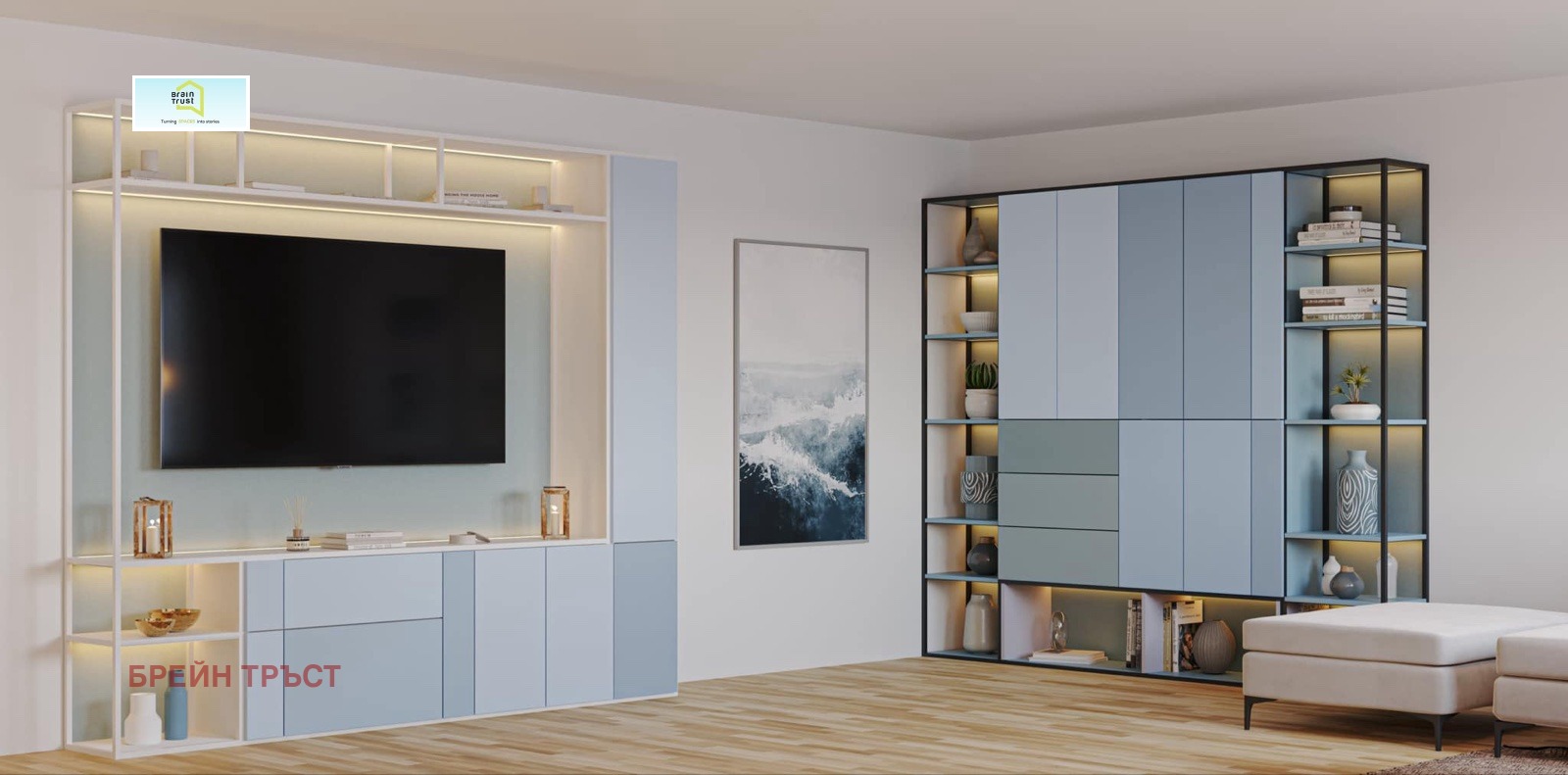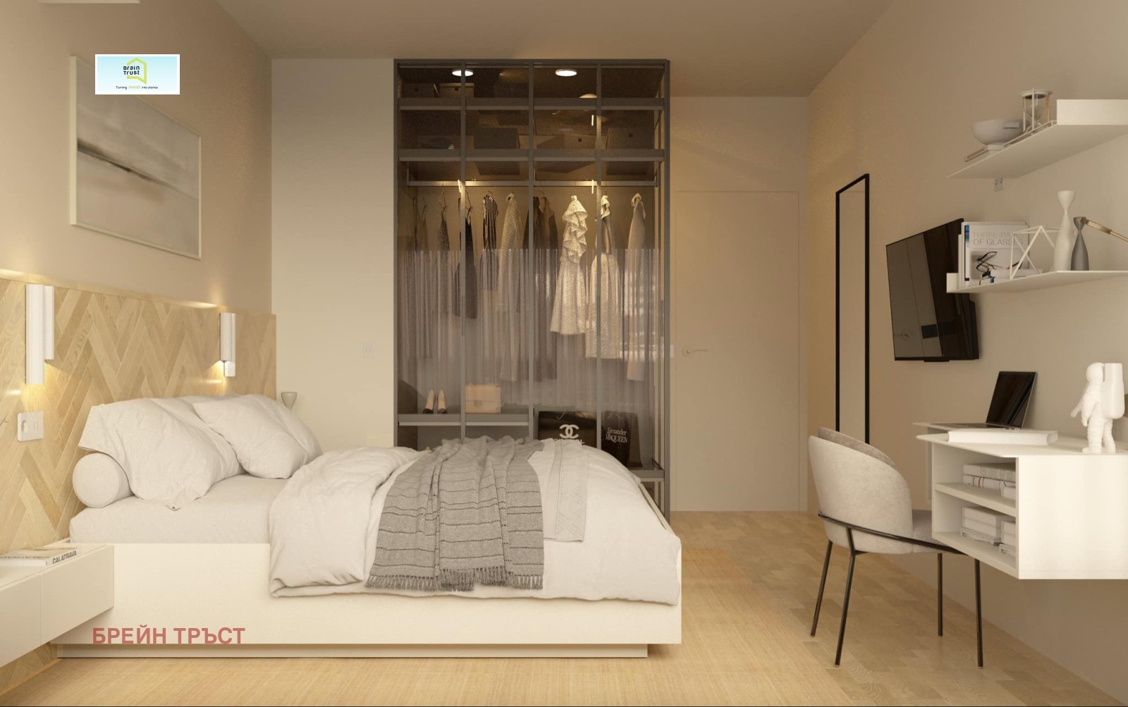 Брейн Тръст представя дизайнерски апартамент под наем в кв. Лозенец, жилищна група Южен парк. Имотът е обзаведен с изключителен стил и вкус, изчистен детайл, предоставящ комфорт, простор и усещане за уют.
