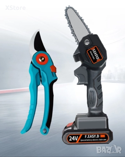 Ръчен електрически верижен трион от закалена стомана с Две батерии - Безчетков двигател