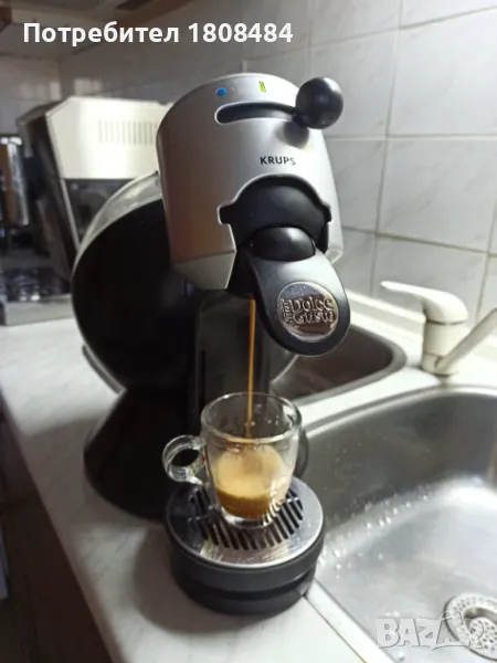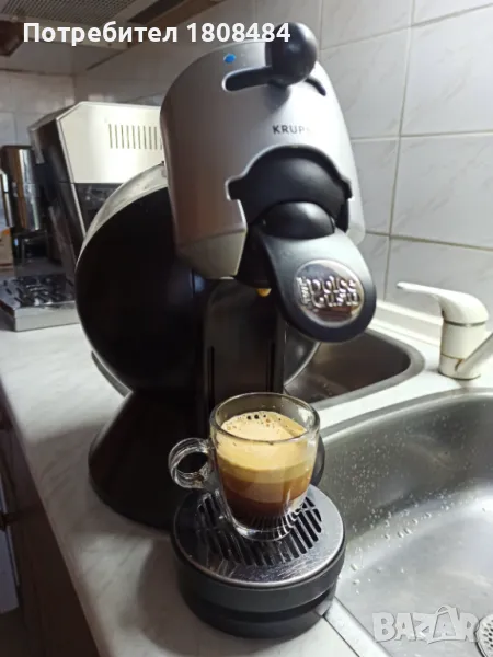 Кафемашина Крупс с капсули Долче Густо, работи отлично и прави хубаво кафе с каймак