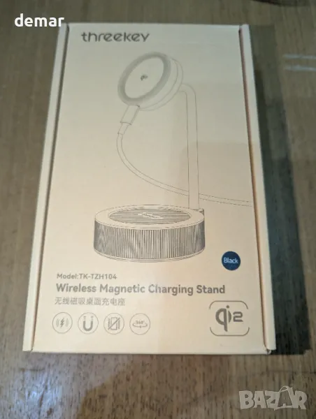 Threekey 15W Qi2 Mag-safe Съвместима безжична зарядна стойка за iPhone и Airpods, черна