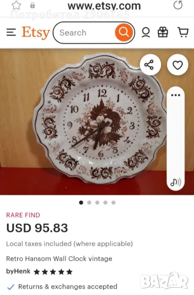 Продавам колекционерски Френски стенен часовник- чиния HANSON.