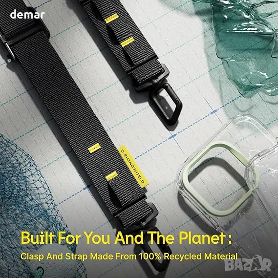 Съвместим с повечето калъфи за iPhone и Android с пълно покритие (с изключение на RHINOSHIELD CrashGuard), този универсален ремък може да се носи като кръстосано тяло, каишка за китка или и двете, с регулируема дължина за различни поводи. Проектиран с широка, лека презрамка (под 60 грама) за комфорт, той е направен от ултра издръжлива, устойчива на разкъсване материя Ripstop. С допълнителни примки и двойни куки, той предлага подобрена функционалност за носене на аксесоари, чанти или бутилки с вода.