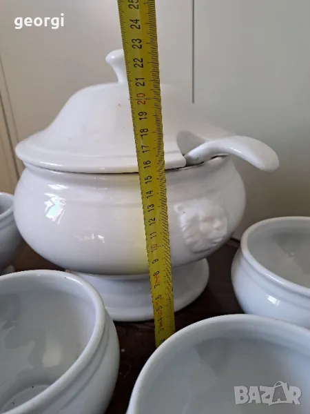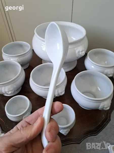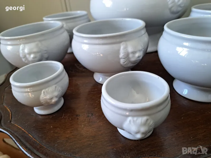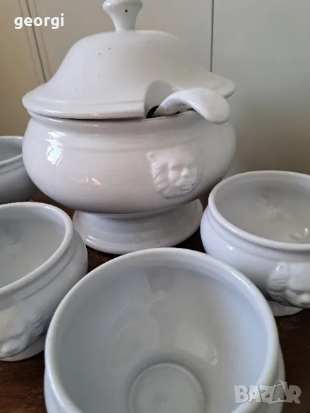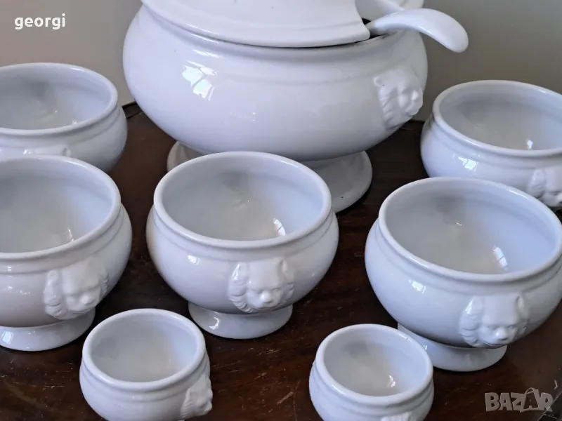 порцеланов терин с черпак и купички с лъвски глави 19/2 → Обява 49095944