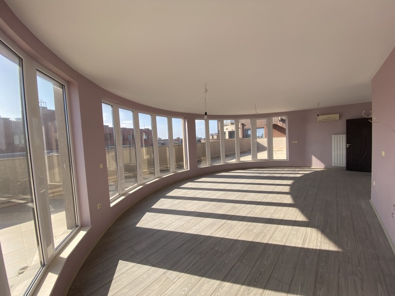 Апартаментът се намира 6-ти последен етаж (единствен апартамент на етажа) със директен достъп на асансьора и е с обща застроена площ по документи 314.83 кв.м. Състои се преддверие, просторна всекидневна с кухненски бокс две спални, две бани с тоалетни и оромна тераса заобикаляща целият апартамент с излаз на нея от всяка стая.. Самият апартамент е около 124 кв.м. застроена площ, а терасата е 190 кв.м, вписана в документа за собственност. От нея по стълба има частен достъп до втора тераса над апартамента с невероятна 360 градусова панорама.