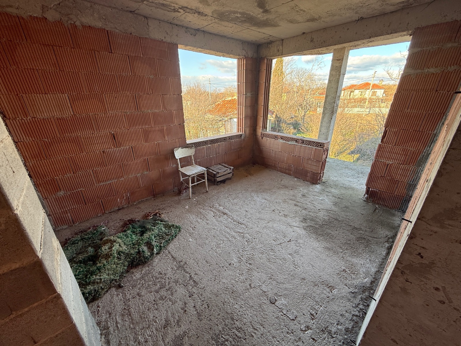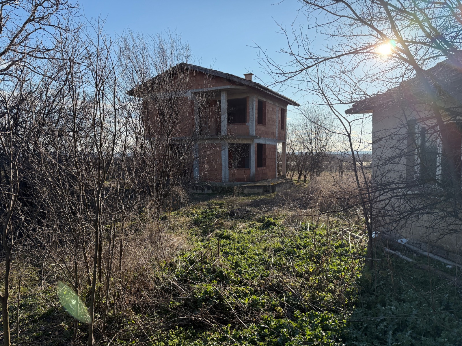 Изключително разчупената архитектура на имота позволявам постройка на басейн или голяма външна веранда между двете къщи. Разполагаме с фирма за довършителни работи и предлагаме на нашите клиенти избор от обзавеждане от а до я. Не на последно място трябва да се отбележи, че имотът в този си вид не изисква подновяване на правото на строеж!!