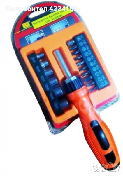 Накрайници: 10 отверткови накрайника, 6 накрайника за гайки;