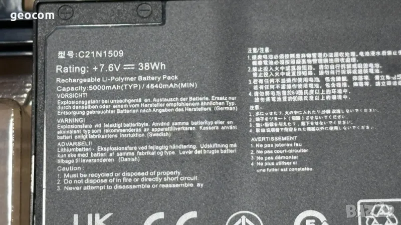 Напрежение: 7.6V. 38Wh. Asus N: C21N1509