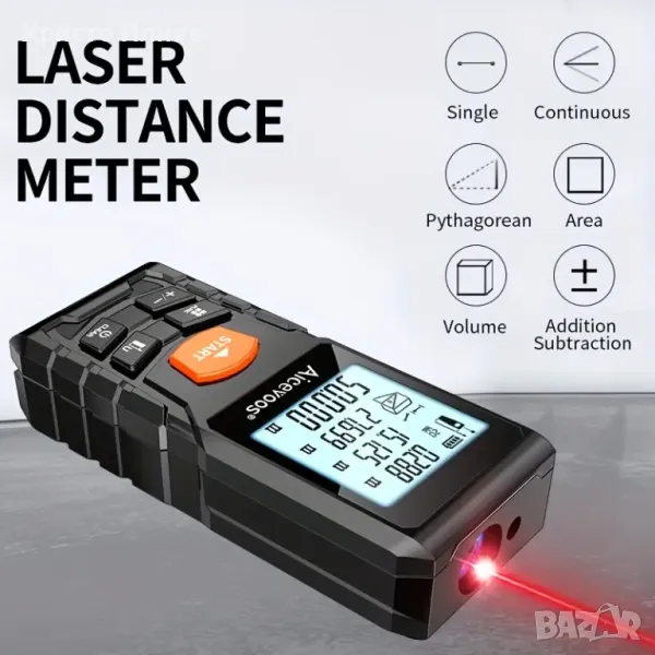 Оборудван с ясен LCD дисплей и звукова звукова индикация при достигане на целево разстояние, което прави отчитането лесно дори при условия на ярка слънчева светлина.