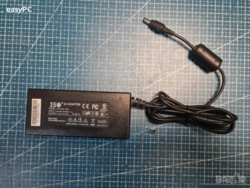 Продавам оригинален захранващ адаптер NINGBO ISO ELECTRONICS CO.,LTD. KPA-060F 12V 5A 60W. Адаптера е употребяван, но е напълно функционален и работи.Има защита от пренапрежение и защита от прегряване. Марката е гаранция за качество.