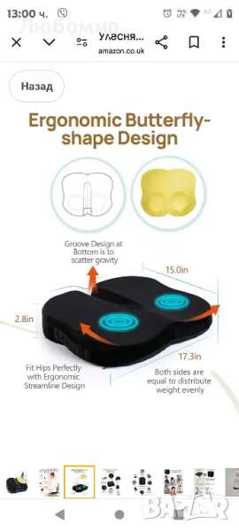 Улесняваща пътуването ергономична възглавница за седалка, първокласна подложка за стол от мемори пяна с противоплъзгаща основа за дълги часове комфорт при седене, опорна възглавница за бедрата за офис стол, столче за кола, стол за игри (черен).Ергономичен дизайн с форма на пеперуда: Възглавницата за седалка от мемори пяна TravelEase се отличава с иновативна ергономична форма на пеперуда, която идеално приляга на бедрата. V-образният изрез на задната част ефективно предотвратява директния натиск върху вашия твърд стол, докато двата канала в долната част спомагат за равномерното разпределение на телесното тегло за по-голям комфорт по време на продължително седене.Подобрено изживяване при седене: Насладете се на незабавно надграждане на вашето изживяване при седене с възглавницата на седалката TravelEase, която се адаптира към тялото ви за персонализиран комфорт. Осигурява отлична и издръжлива поддръжка на задните части, като гарантира, че всеки момент на седене е приятен. Перфектен за тези, които прекарват дълги часове на бюро или просто искат да подобрят местата си за сядане.Страхотен за всякакви неудобни столове за сядане: Неговите размери от 44 x 38 x 7 cm и вградената дръжка ви позволяват лесно да носите преносимата възглавница за седалка TravelEase навсякъде със себе си - офис стол, стол за игри, дълги пътувания, докато гледате телевизия или използвате компютъра, и навсякъде, където искате да седнете удобно.