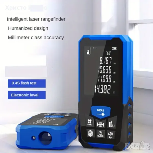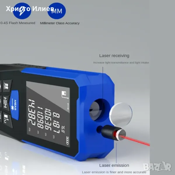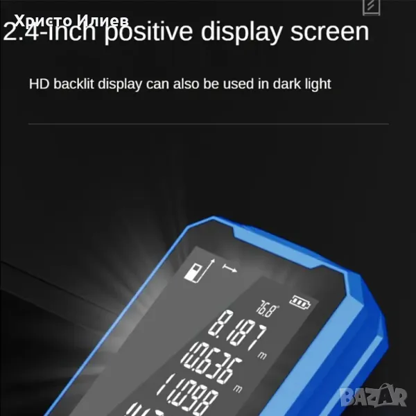 лазерна ролетка е с обхват 100m. Той е с функция за електронен ъгъл, която ви показва ъгъла в реално време и ви кара да знаете състоянието на нивелиране. Нещо повече, LCD-VA екранът прави дисплея по-ясен.