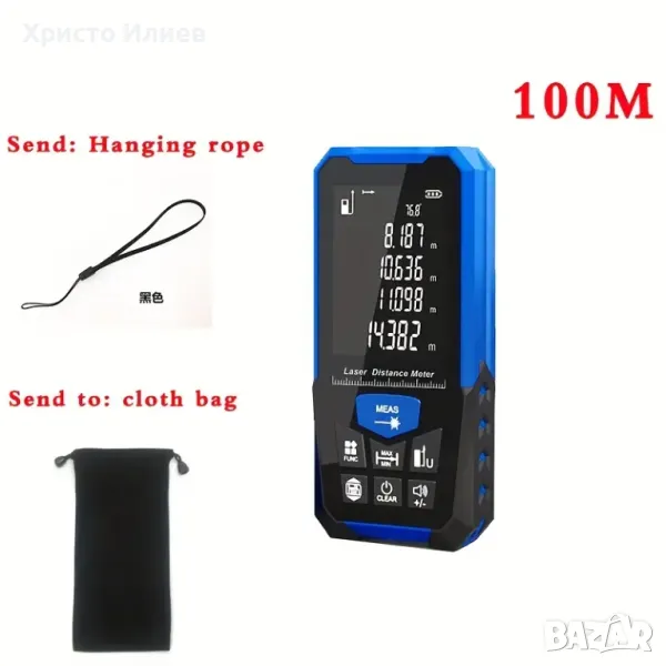 Лазерна ролетка измерване на ъгъл Електронна дигитална с дисплей 100м обхват далекомер рулетка