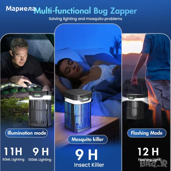Соларна лампа за унищожаване на комари 4200V / Лампа Против Комари 3000mAh