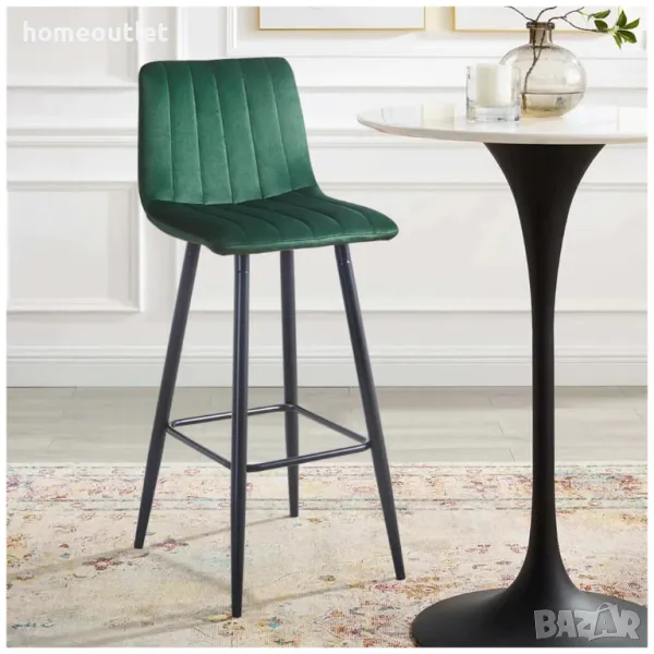 Високите столове са подсилени с черни метални крака, за да осигурят безопасността и стабилността на продукта.