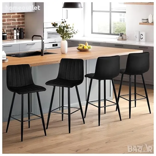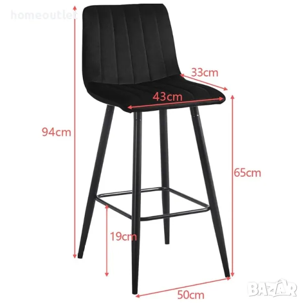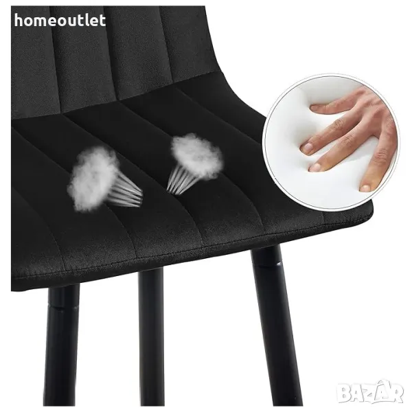 Високите столове са подсилени с черни метални крака, за да осигурят безопасността и стабилността на продукта.