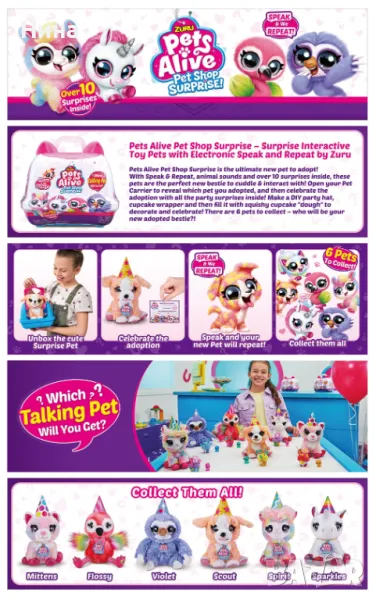 Всеки комплект съдържа по 1 брой домашен любимец, който пристига с над 10 аксесоара