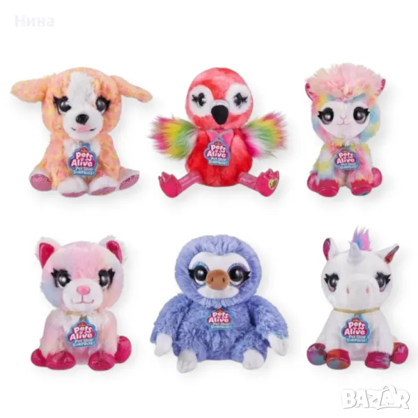 Цялата серия се състои от 6 плюшени играчки между които - кученце, коте, фламинго, лама, ленивец и еднорог.