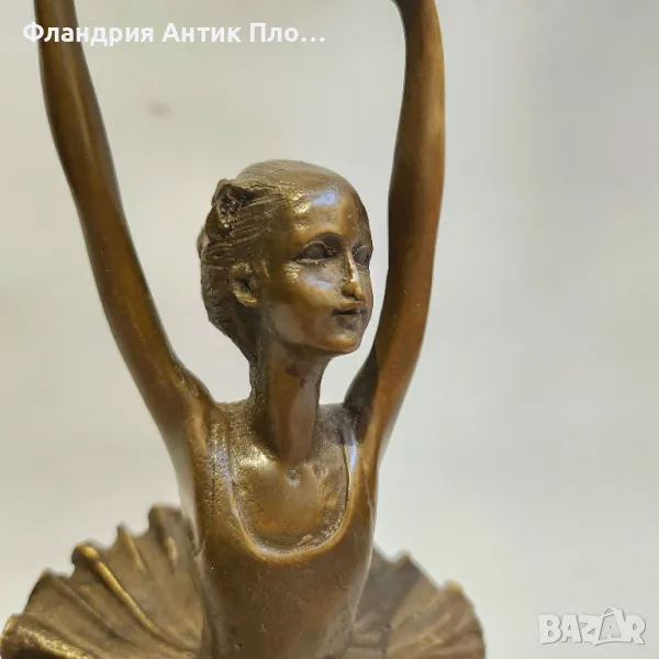 Изящна бронзова фигура на балерина в класическа поза, върху елегантна мраморна основа. Символ на грация, изкуство и движение. Перфектен подарък за ценители на балета!