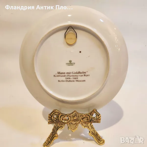 Изключителна порцеланова чиния, произведена от Heinrich Porzellan (Германия), с репродукция на прочутата картина „Мъжът със златния шлем“, приписвана на Рембрандт ван Рейн (1606-1669). Това произведение на изкуството е част от Берлин-Далем / Музей и впечатлява с драматично осветление и експресивен детайл.