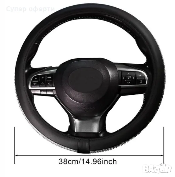 Калъф за волан от еко к о ж а с камъни 38см → Обява 49099545