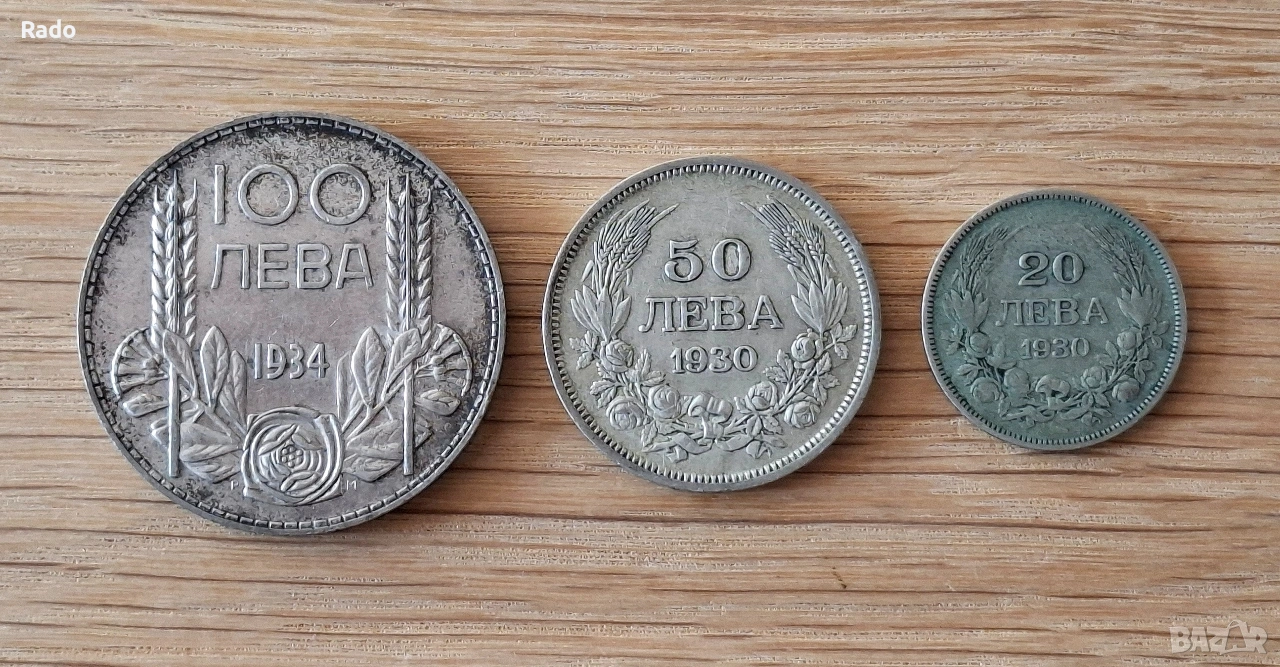 Лот от Сребърни монети непочистени 100лв 1934г,50лв1934г,20лв1930г.. → Обява 49099569